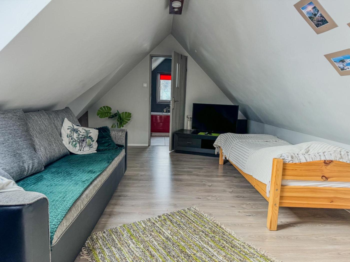 Apartament dwupoziomowy. This spacious apartment is comprised of 2 bedrooms, a kitchen and 2 bathrooms with a shower and a hairdryer. The apartments kitchen, which features a refrigerator, is available for cooking and storing food. The apartment offers a flat-screen TV, a wardrobe, an electric kettle, heating as well as mountain views. The unit offers 3 beds and 1 futon. Apartament - 5 osobowy. Powierzchnia pokoju ok.: 80 mkw. ;