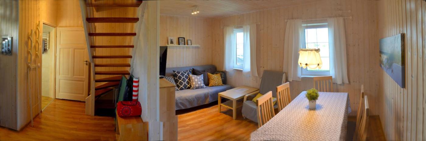 Dom z 2 sypialniami. This holiday home includes 1 living room, 2 separate bedrooms and 1 bathroom with a shower and a hairdryer. Guests will find a stovetop, a refrigerator, kitchenware and a tea and coffee maker in the fully equipped kitchen. The holiday home also features a barbecue. Boasting a terrace with garden views, this holiday home also offers soundproof walls and a flat-screen TV with satellite channels. The unit has 6 beds. Dom wakacyjny - 6 osobowy. Powierzchnia pokoju ok.: 60 mkw.