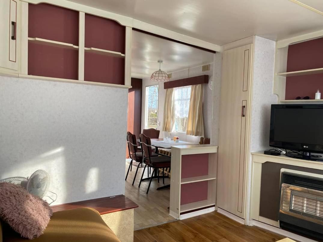 Domek holenderski. The fireplace is a top feature of this mobile home. Boasting a private entrance, this mobile home also includes 1 living room, 2 separate bedrooms and 1 bathroom with a shower. Guests will find a stovetop, a refrigerator, kitchenware and a microwave in the kitchenette. The mobile home also features a barbecue. The mobile home has carpeted floors, a seating area with a flat-screen TV, a washing machine, a dining area as well as garden views. The unit has 3 beds. Domek holenderski - 5 osobowy. Powierzchnia pokoju ok.: 35 mkw.