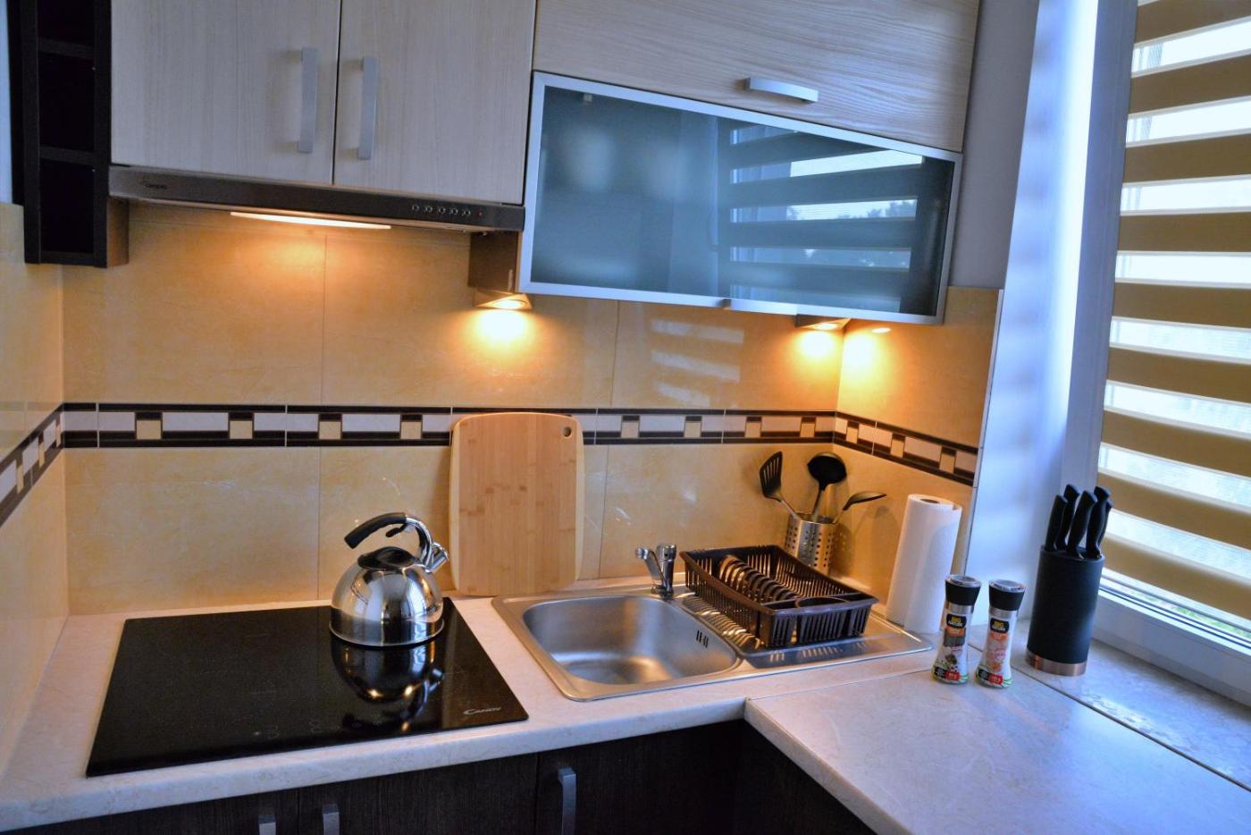 W apartamencie zapewniono sypialnię (1), łazienkę (1), pościel, ręczniki oraz kuchnię z pełnym wyposażeniem. Do dyspozycji Gości jest także telewizor z płaskim ekranem oraz balkon z widokiem na miasto.