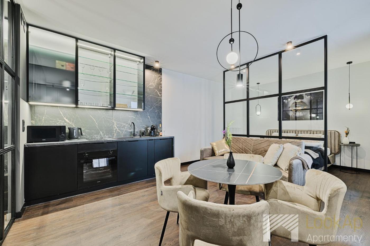Apartament typu studio. This apartment provides a fireplace. This apartment comprises 1 living room, 1 separate bedroom and 1 bathroom with a bath and free toiletries. Guests can make meals in the kitchenette that comes with a stovetop, a refrigerator, a dishwasher and an oven. This apartment features a washing machine, a coffee machine, a flat-screen TV with cable channels and a balcony. The unit offers 2 beds. Apartament - 4 osobowy. Powierzchnia pokoju ok.: 38 mkw.