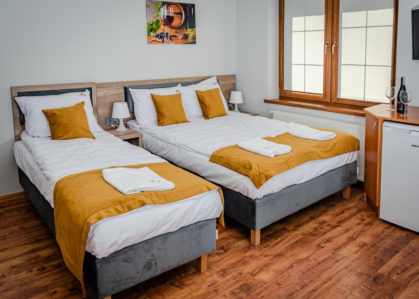 Pokój Trzyosobowy typu Basic. The triple room offers a barbecue, parquet floors, as well as a private bathroom featuring a shower. This triple room features a tea and coffee maker, a wardrobe, flat-screen TV, as well as winechampagne for guests. The unit offers 2 beds. Pokój Trzyosobowy - 3 osobowy. Powierzchnia pokoju ok.: 16 mkw. ;