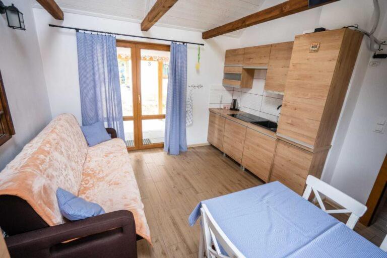 Dom z 1 sypialnią. This holiday homes special feature is the fireplace. Featuring a private entrance, this holiday home also comprises 1 living room, 1 separate bedroom and 1 bathroom with a bath or a shower. Guests will find a stovetop, a refrigerator, kitchenware and an electric kettle in the kitchenette. The holiday home also provides guests with a barbecue. Boasting a terrace with garden views, this holiday home also provides a dining area and a flat-screen TV with satellite channels. The unit offers 3 beds. Dom wakacyjny - 6 osobowy. Powierzchnia pokoju ok.: 35 mkw.