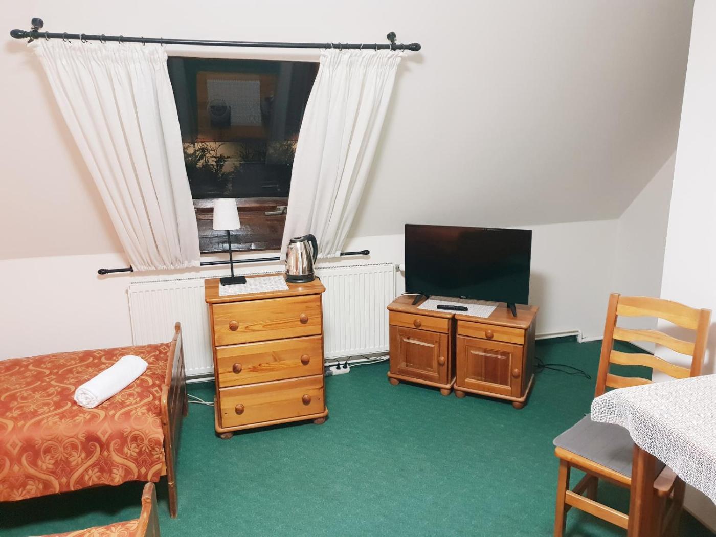 Pokój trzyosobowy. This triple room features an electric kettle and a TV. The unit has 2 beds. Pokój Trzyosobowy - 3 osobowy. Powierzchnia pokoju ok.: 15 mkw. ;